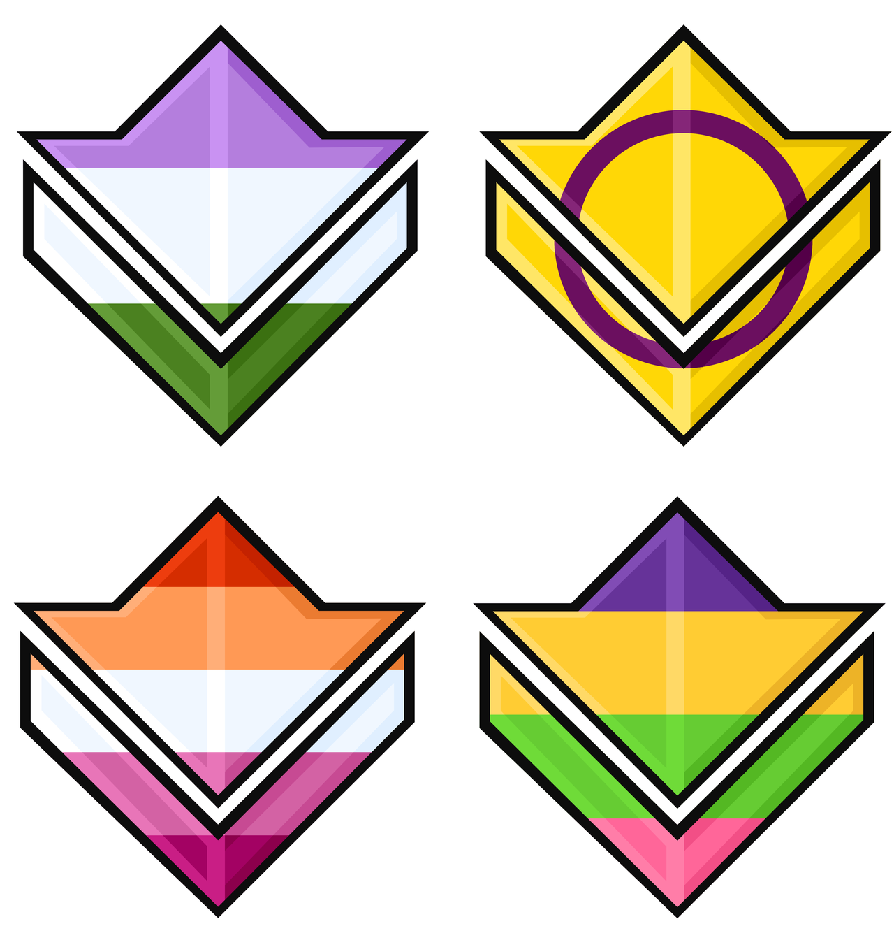 13-16: (From left to right, top to bottom) Genderqueer, Intersex, Lesbian, Lesbian alternative. 13-16: (From left to right, top to bottom) Genderqueer, Intersex, Lesbian, Lesbian alternative.